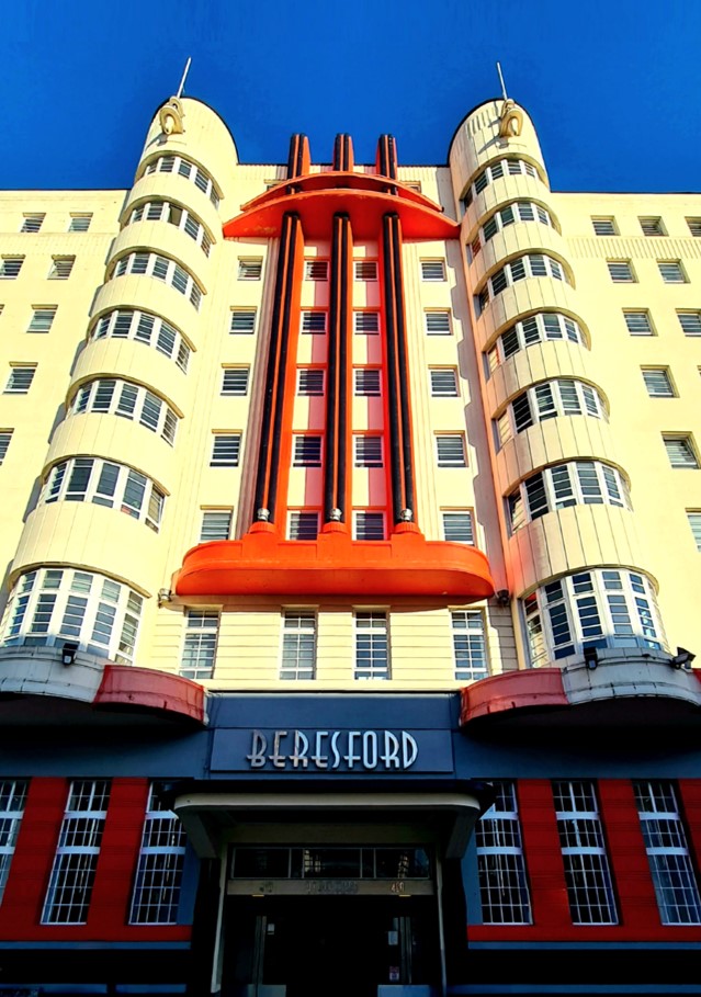 The former Beresford Hotel is one of Glasgow’s finest Art Deco buildings. Constructed in 1937 for visitors attending the 1938 Empire Exhibition in Bellahouston Park, it was designed by William Beresford Inglis, who later went on to manage it. Having served time as a university halls of residence, it is now private apartments. The Beresford has an unexpected place in American 20th Century politics as it was here in 1939 that a 22 year old John F. Kennedy (the future US president), gave his first official public speech.