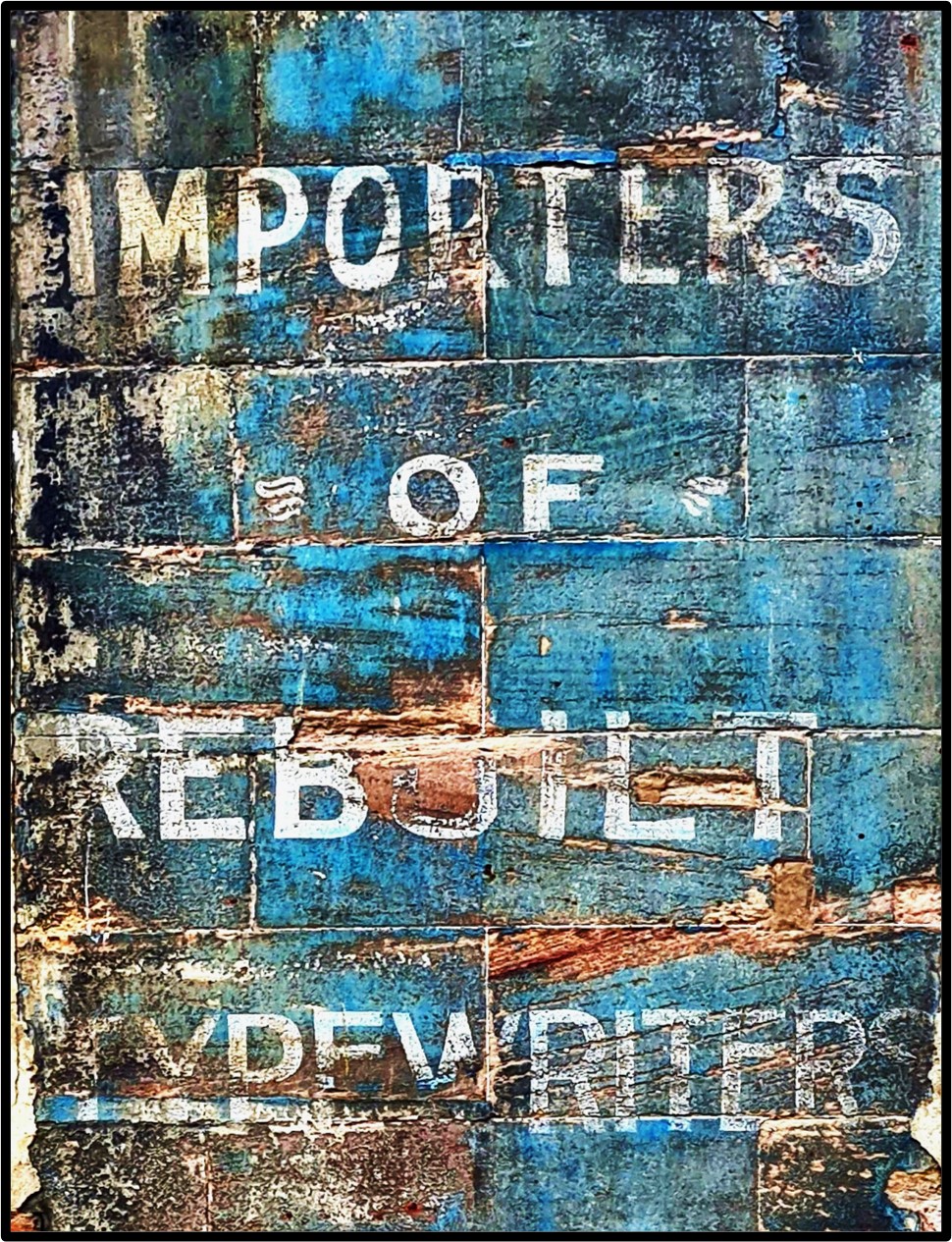 This ghost sign is one of a series between the first floor windows of an old sandstone building on Oswald Street in central Glasgow which was once home to the Typewriter Repair Company. The sign probably dates from the 1910s.The print itself is 7.25 inches by 9 inches (18.5 cm by 23cm), and it comes mounted in a white 1.5 inch (3.5 cm) mount with a total size of 10 inches by 12 inches (25.5 cm by 30.5cm).